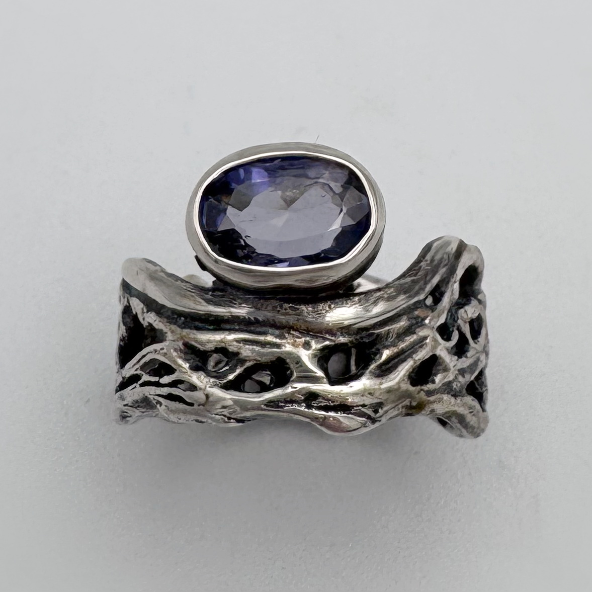 Textured Sterling Silver cast from desert cactus fibre, Tanzanite