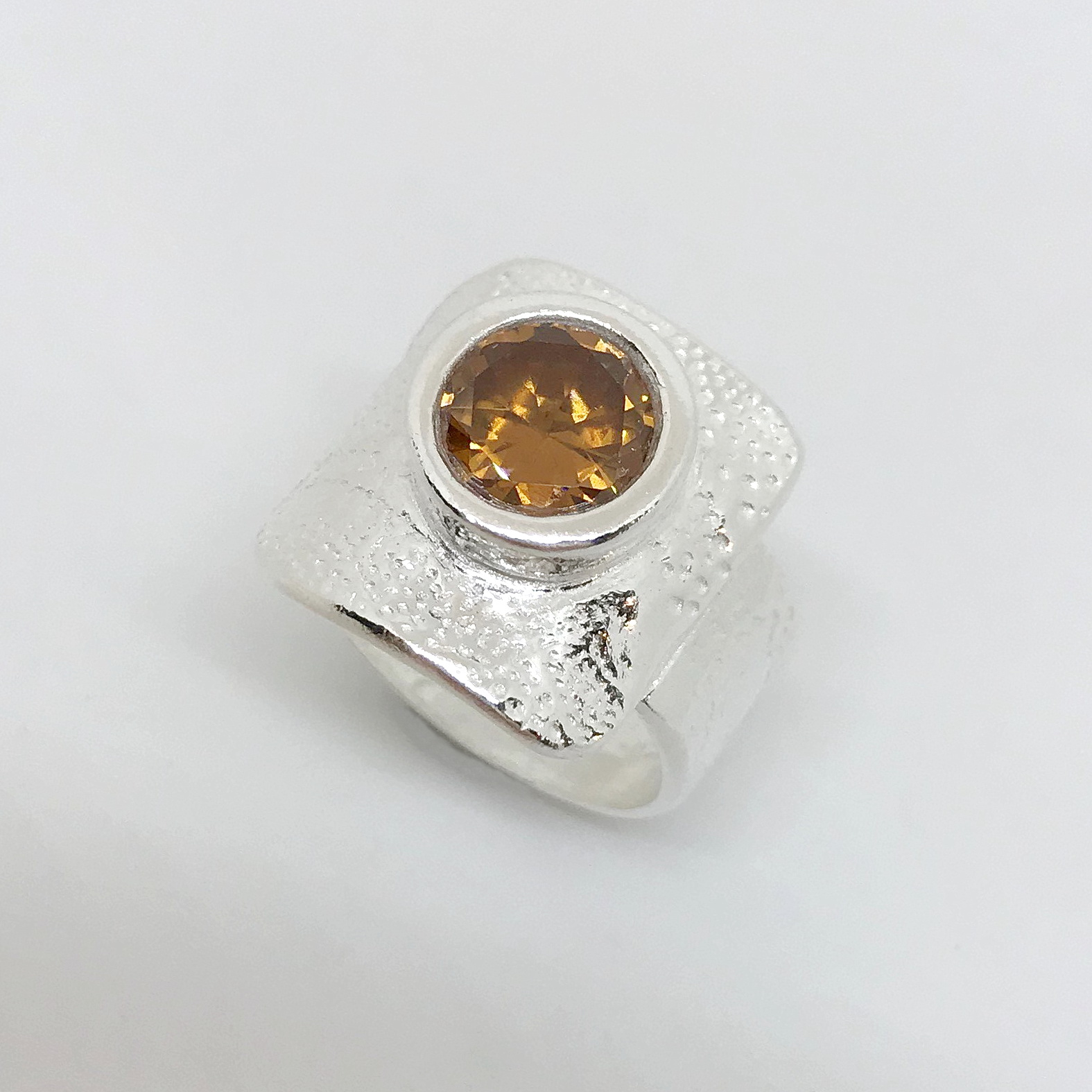 Textured Ring with Champagne Cubic Zirconia by Veronica Stewart