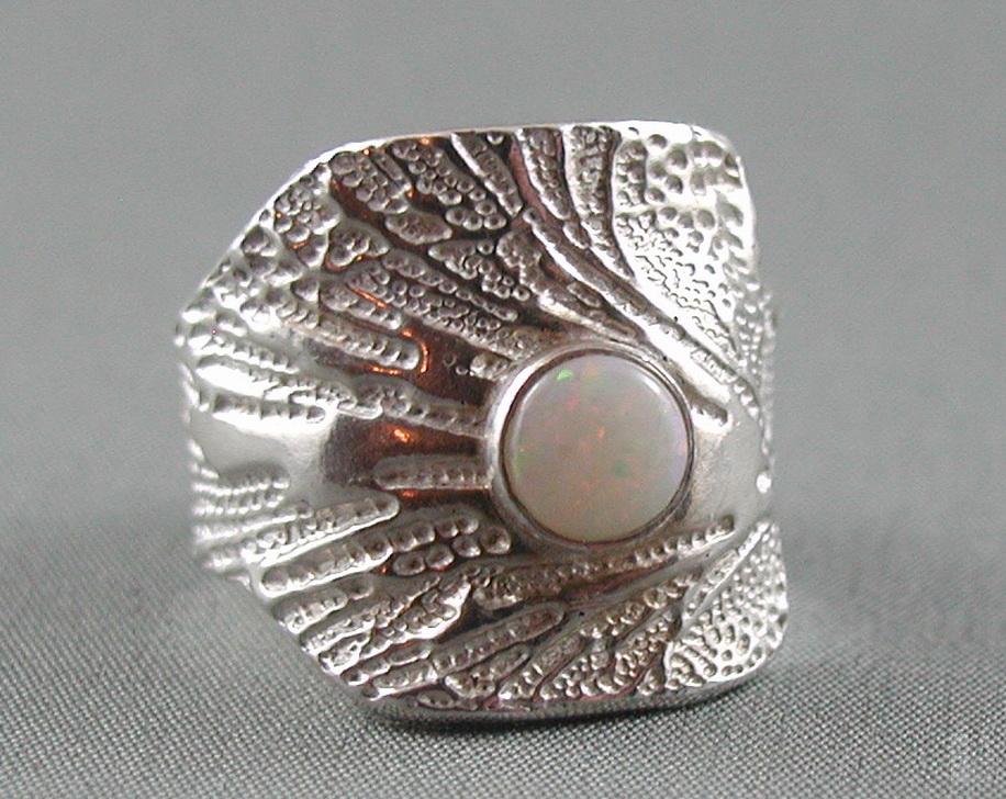 Textured Ring with Opal