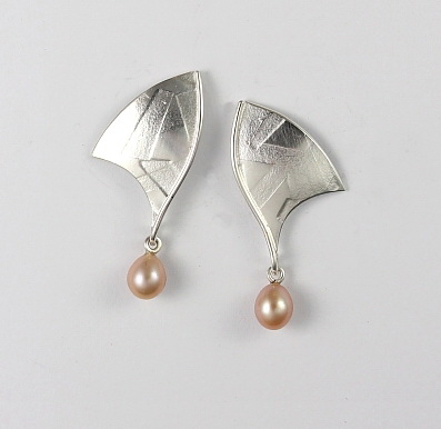 Textured Silver and Natural Freshwater Pearl Earrings by Brenda Roy