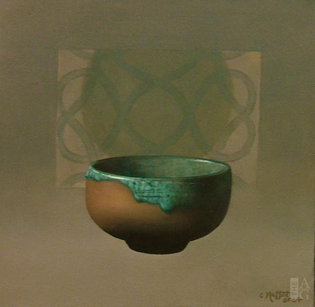 Turquoise and Raku Pot with Patch by Catherine Moffat