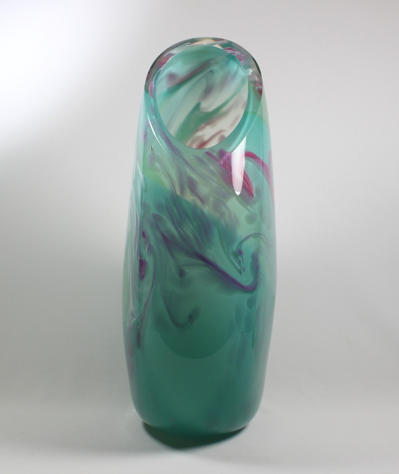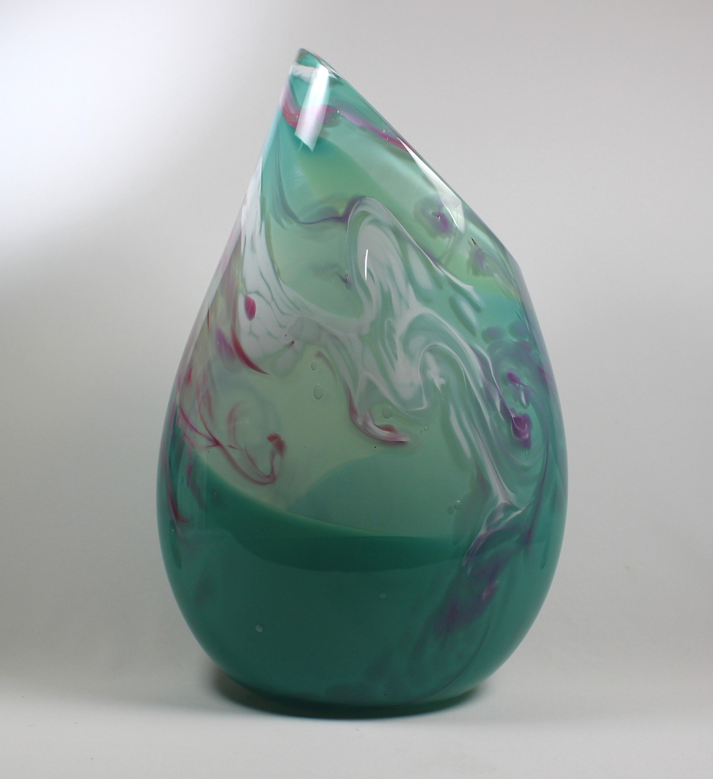 Turquoise with White and Raspberry Vase by Guy Hollington