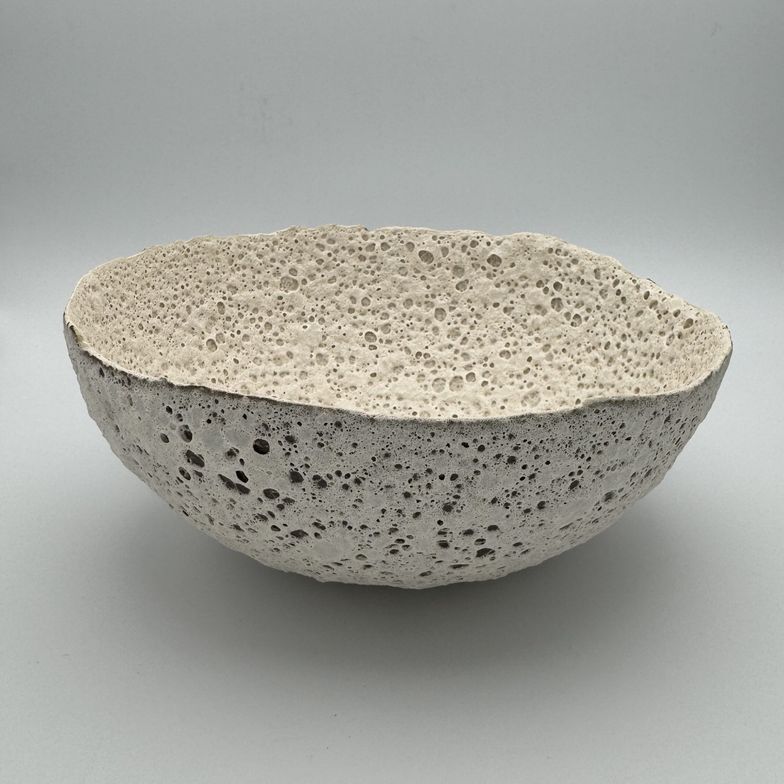Stoneware with black slip in white lava glaze