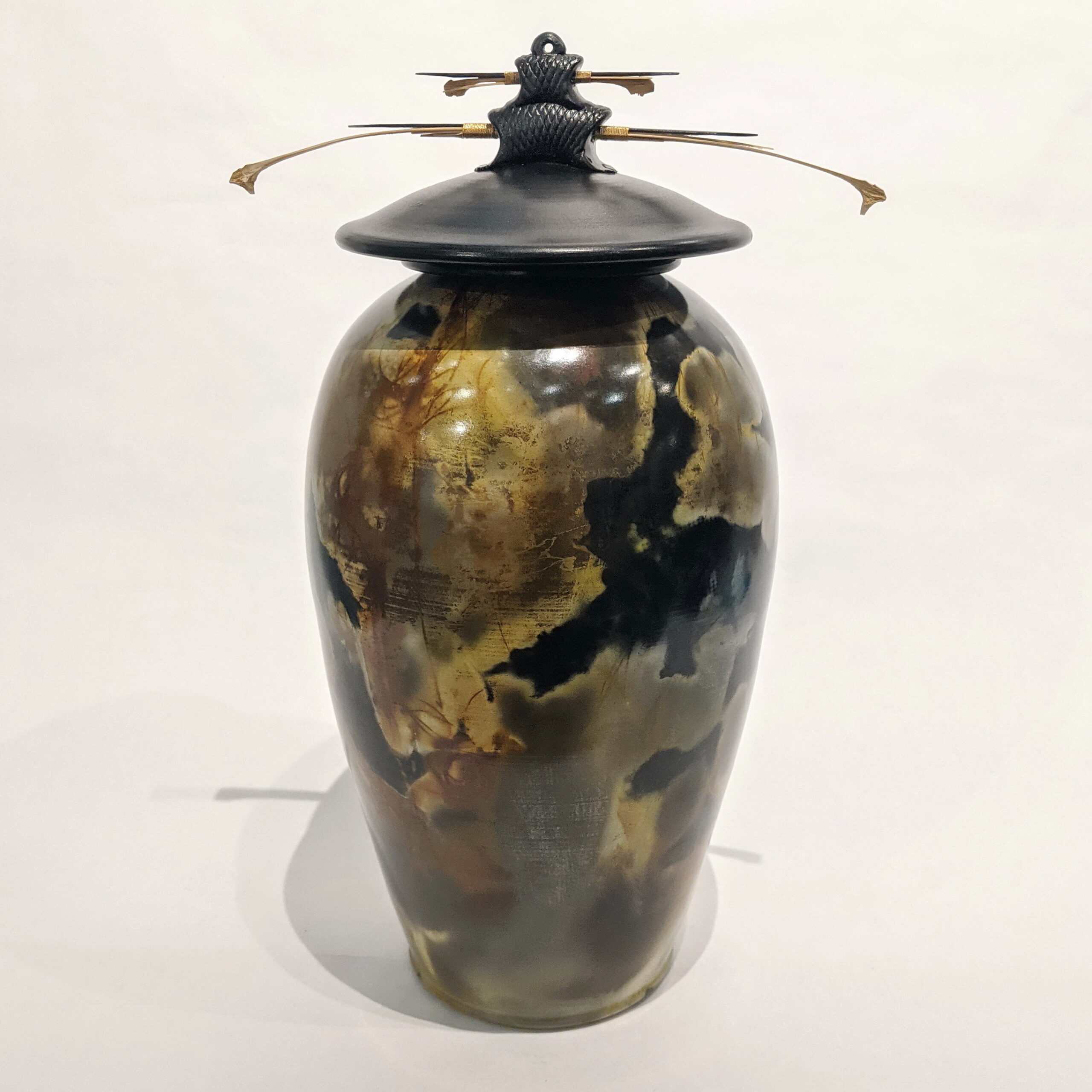 Very Large Vase with Double Lid & Gold by Geoff Searle