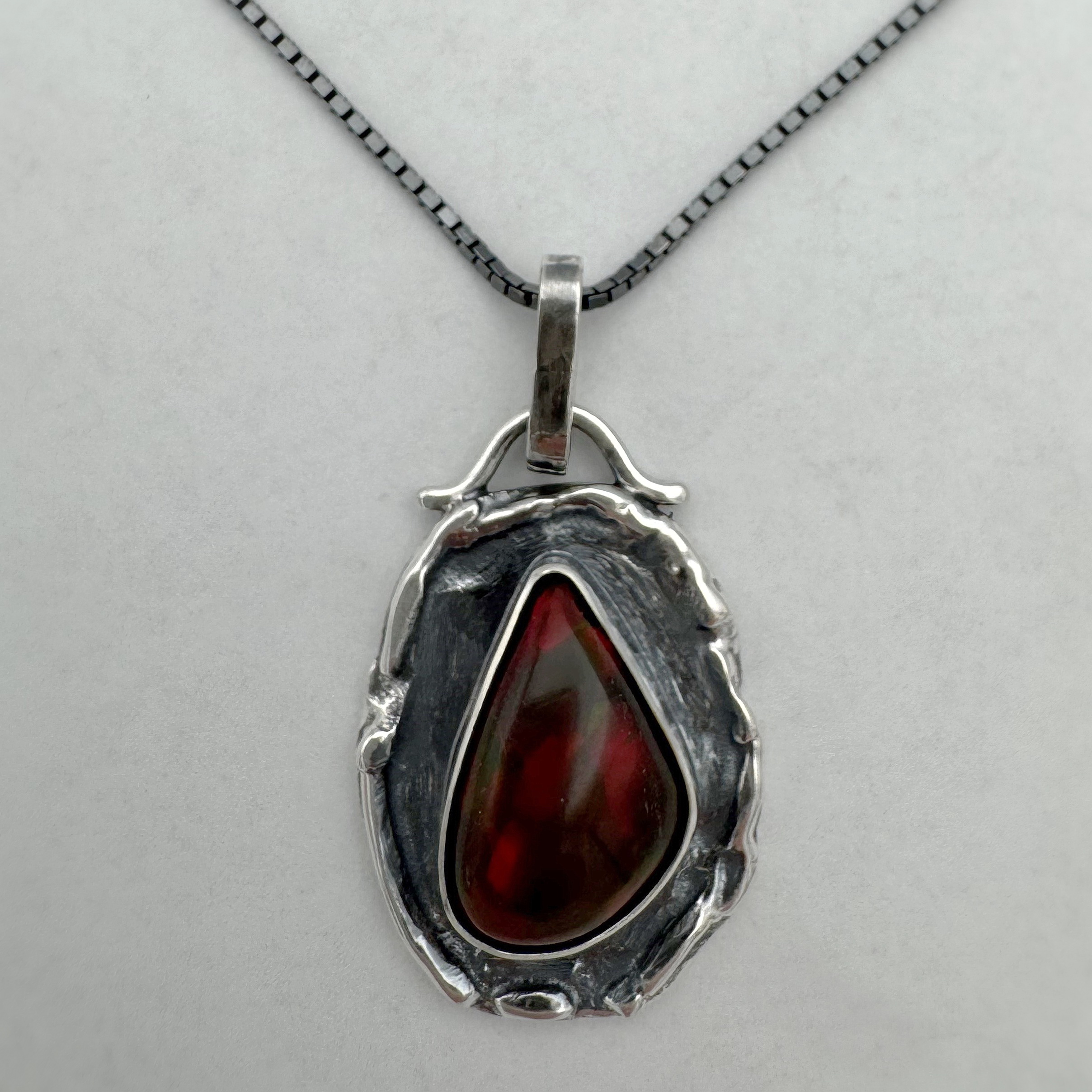 Wax Seal Pendant with Black Opal by A & R Jewellery