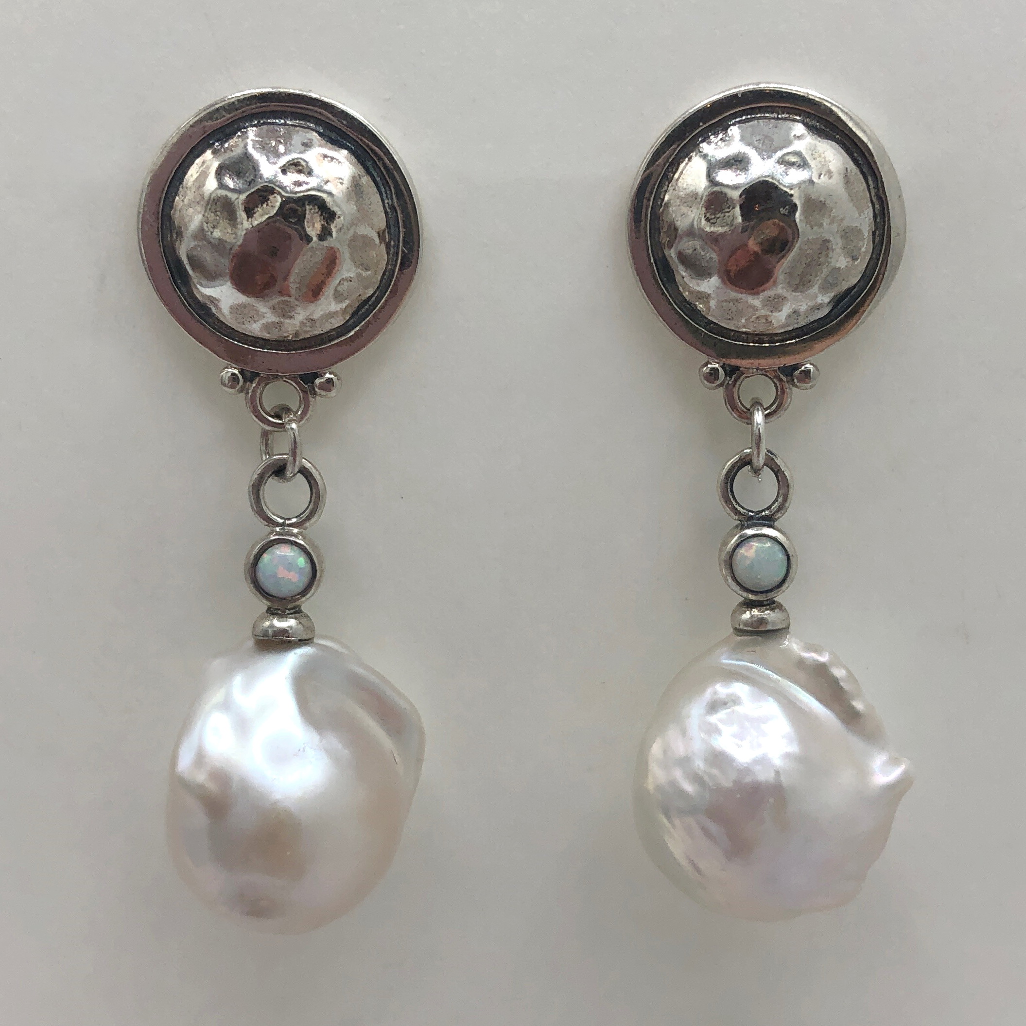 Sterling Silver, White Baroque Pearls, Opals
