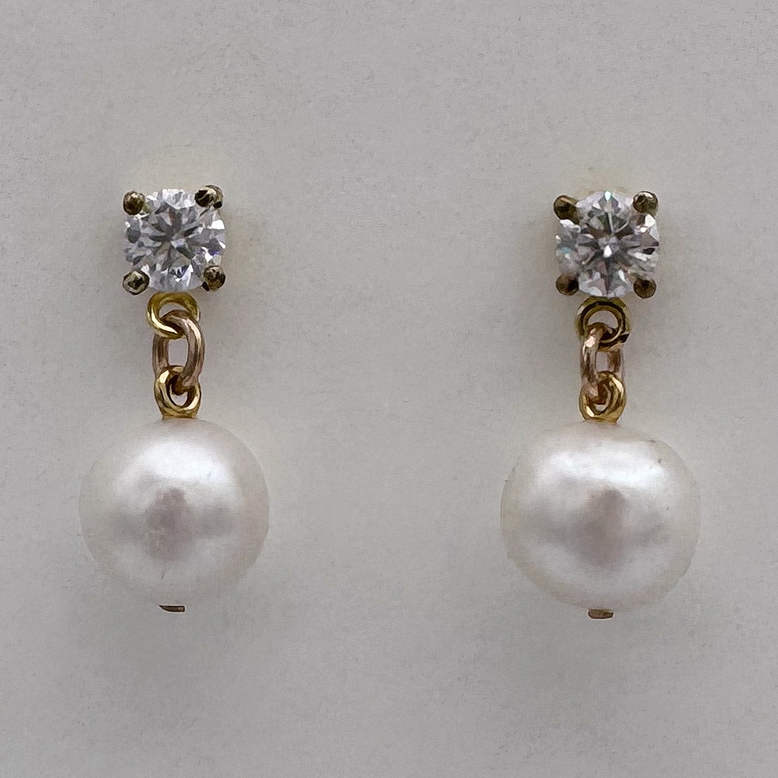 White Pearl & Lab Grown Diamond Earrings by Val Nunns