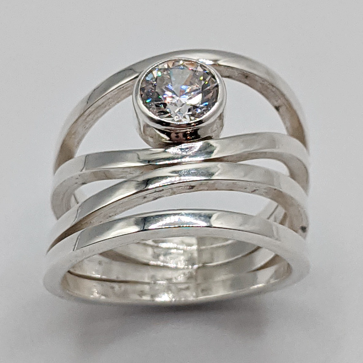 Wind Design Ring with Cubic Zirconia by A & R Jewellery
