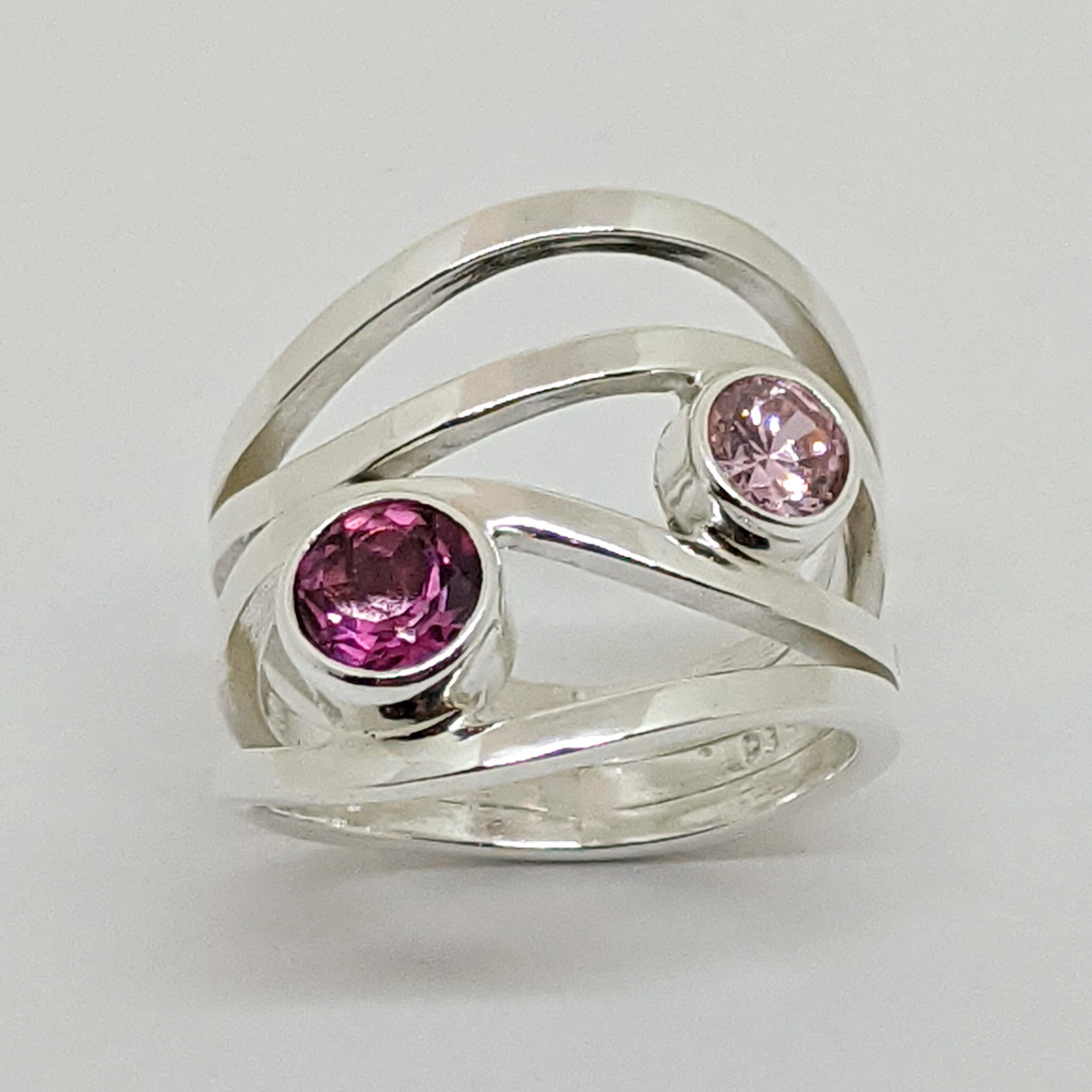 Argentium Silver, 1.0ct round Pink Topaz, 0.5ct round Pink Cubic Zirconia