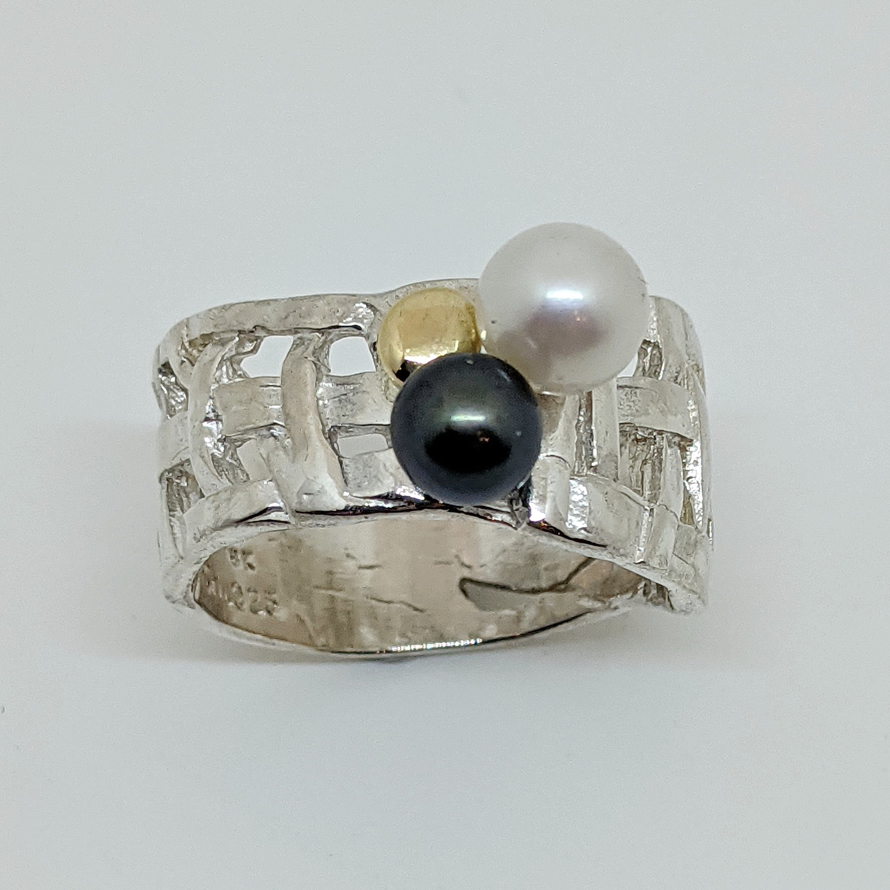 Woven Basket Double Pearl Ring by Chi’s Creations