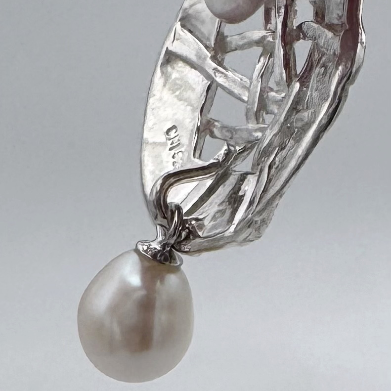 Sterling Silver, Hematite, White Pearls, 14kt. Gold Ear Posts