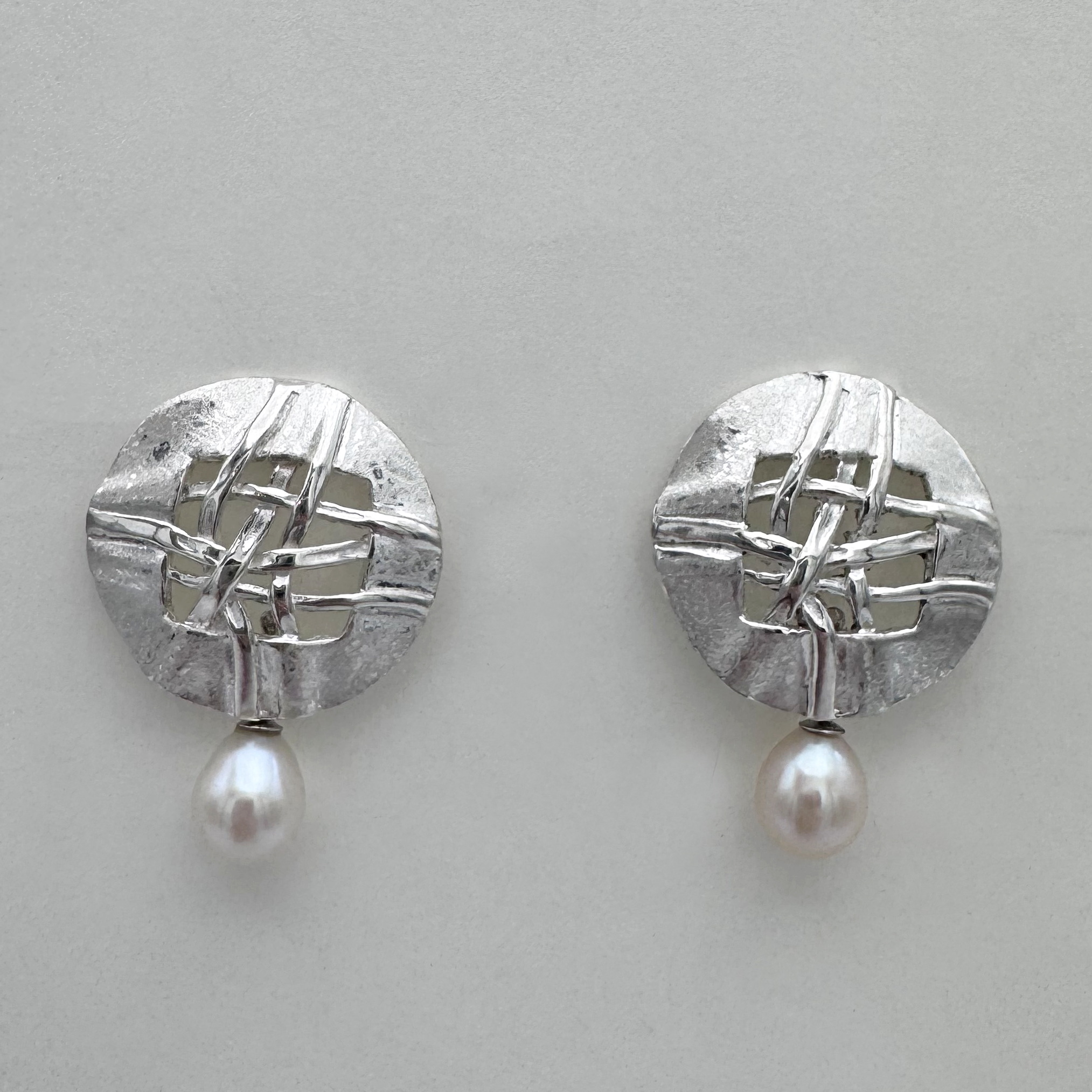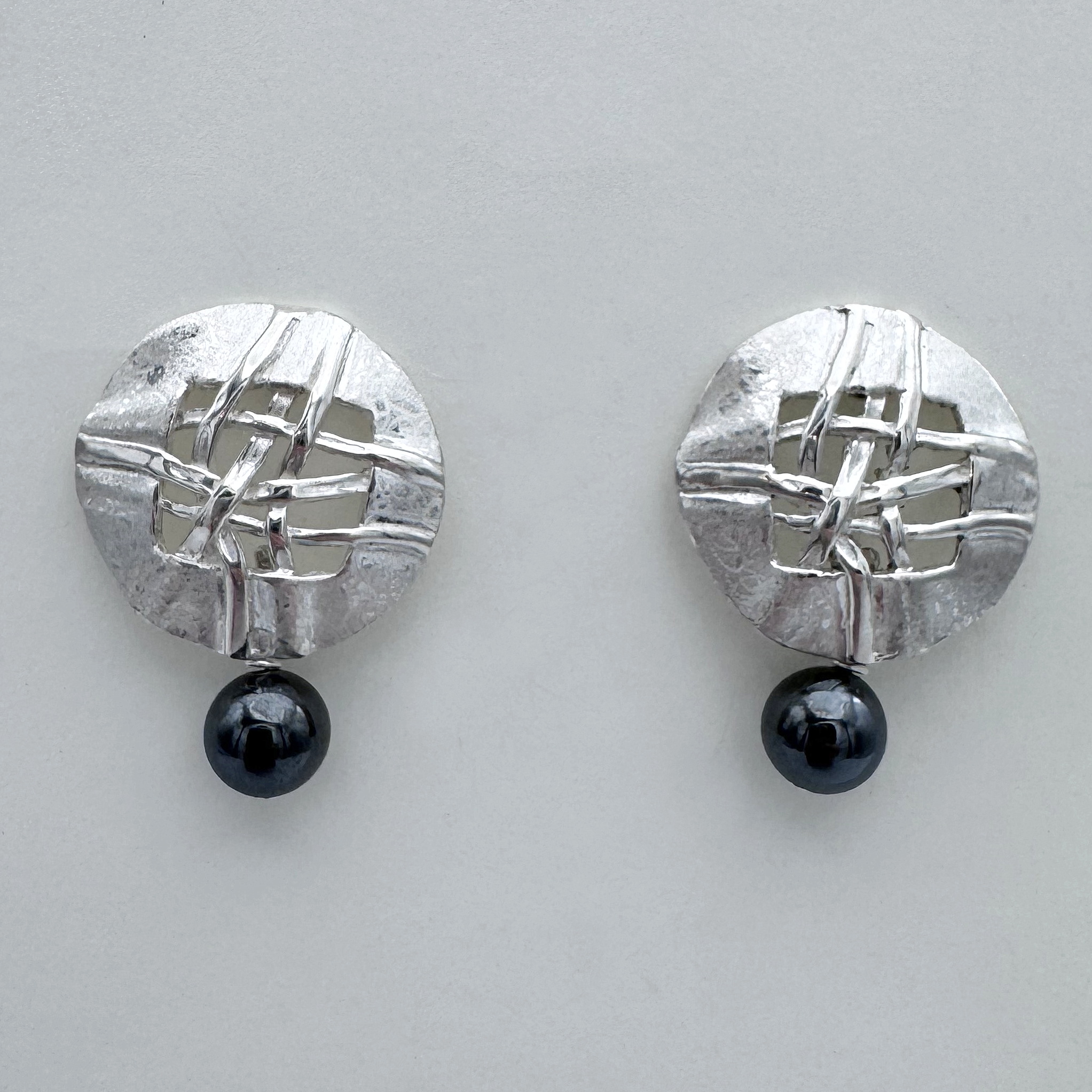 Woven Disc Earrings with Detachable Hematite and Pearls by Chi’s Creations