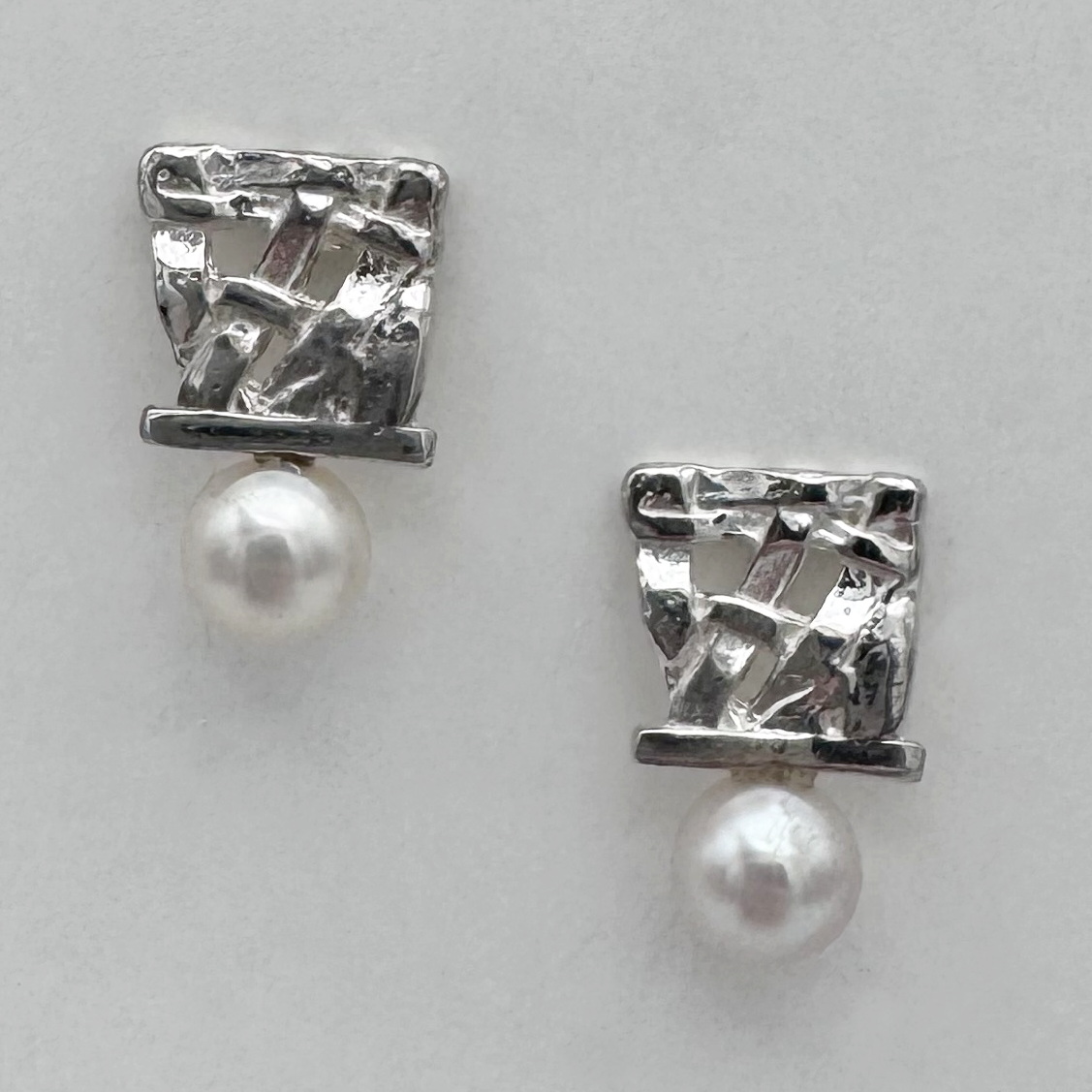 Sterling Silver, White Pearls, 14kt. Gold Ear Posts