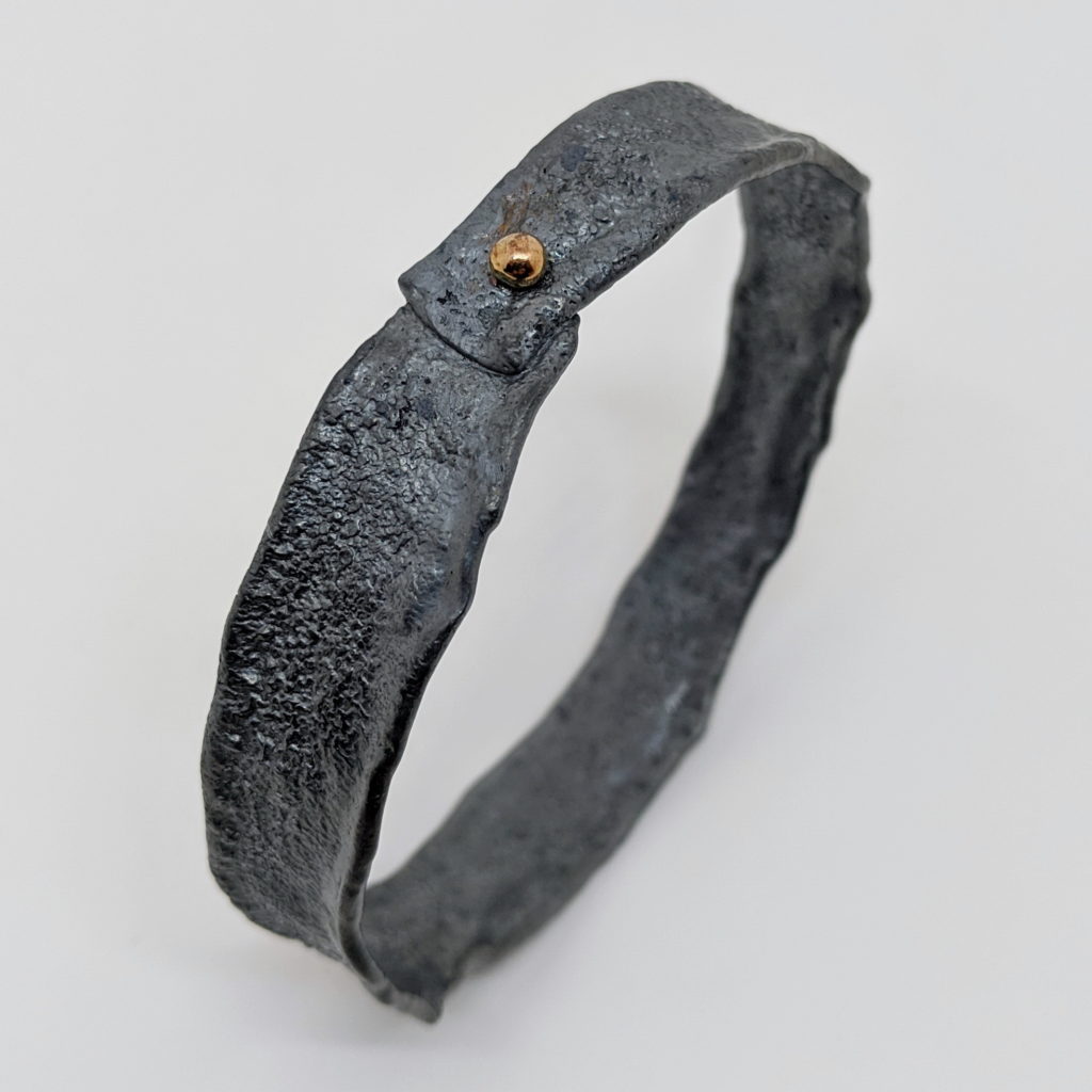Narrow Oxidized Silver Bangle with Gold Ball