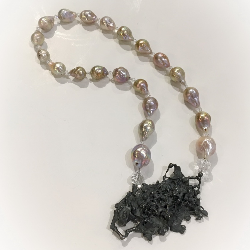 Oxidized Silver, Freshwater Pearls 23.5″ long