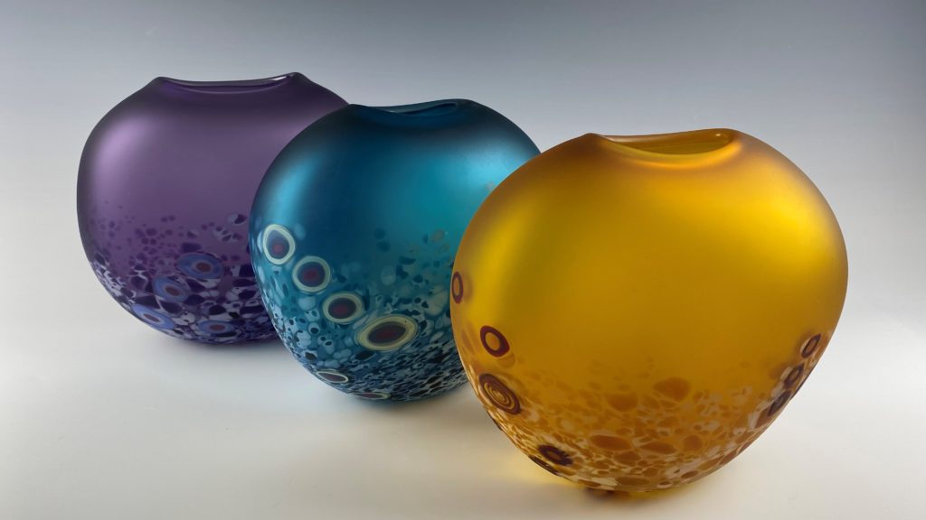 Tulip Vases – Frosted (L to R: Purple, Teal, Amber)